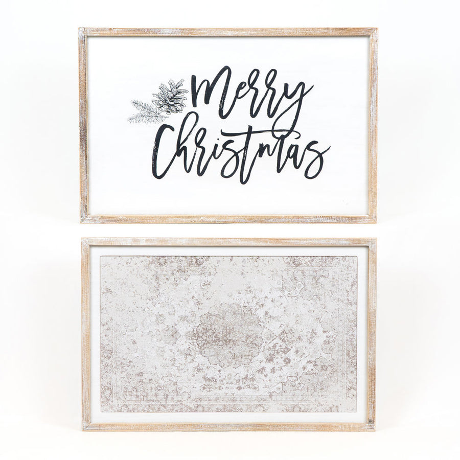 Santa/Tree Reversible Wood Frame Sign - Holiday Decor