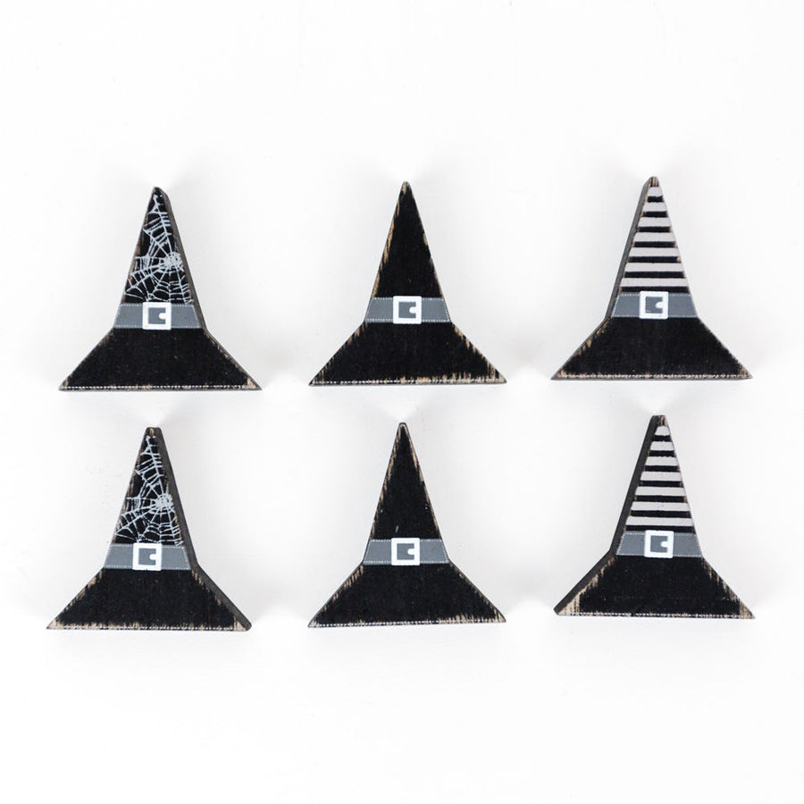 Witch Hat Wood Shapes - Set of 6 Multicolor Halloween Decor