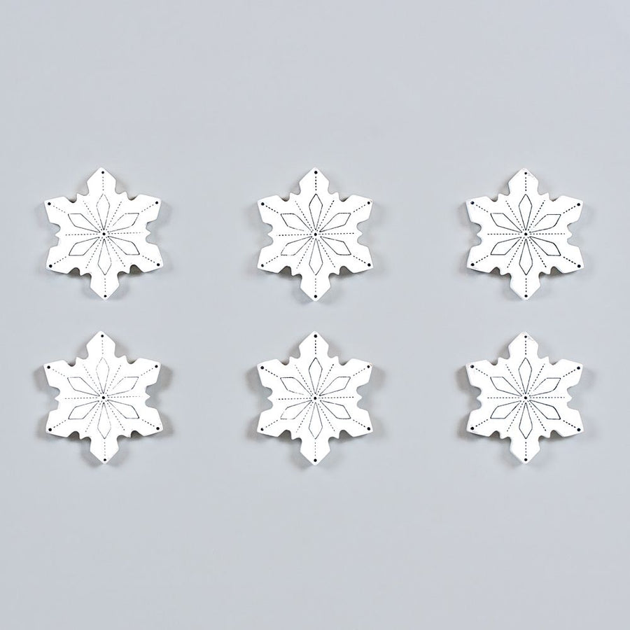 Snowflake Wood Shapes Set - White & Black (6 Pieces)