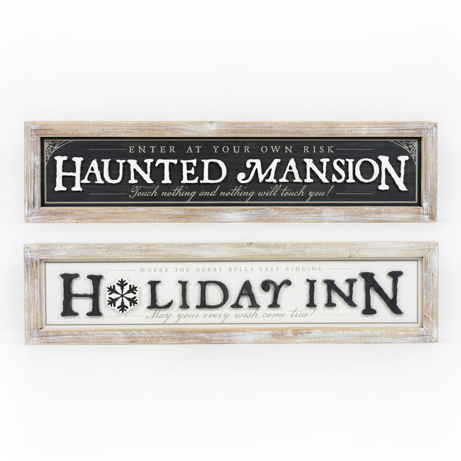 Reversible Wood Framed Sign - Haunted Mansion/Holiday Inn