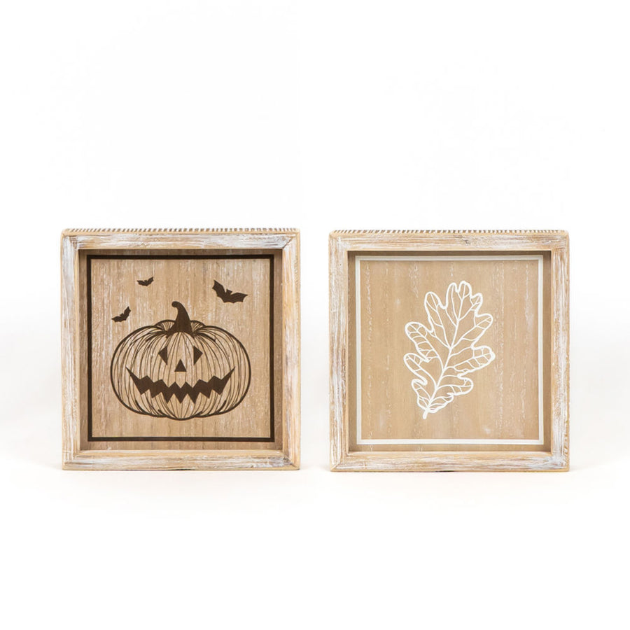 8x8 Reversible Wood Sign - Autumn Leaf & Jack OLantern