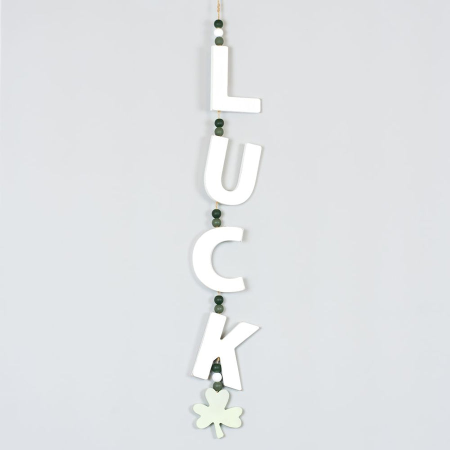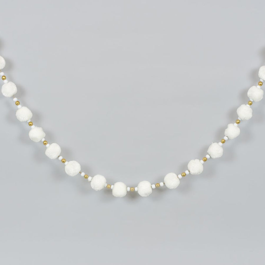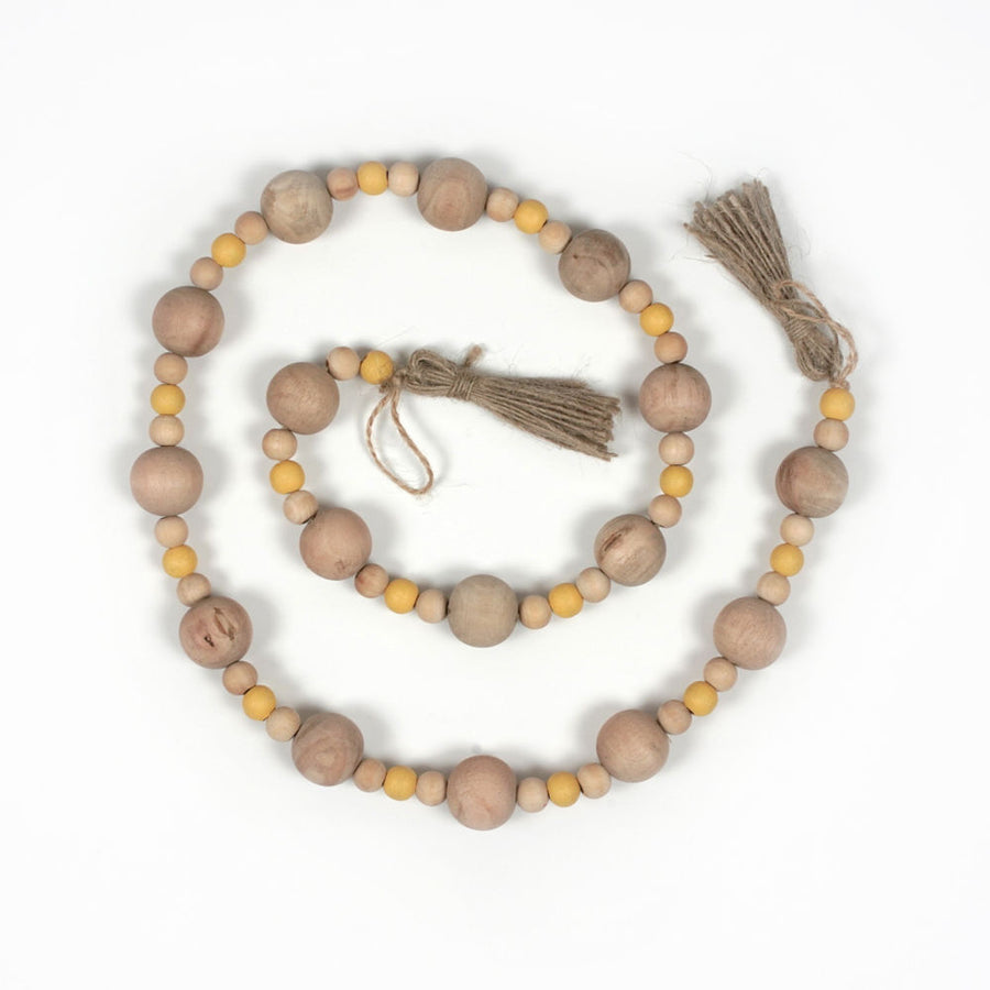 36" Wood Bead Garland with Tassels - White & Olive Green