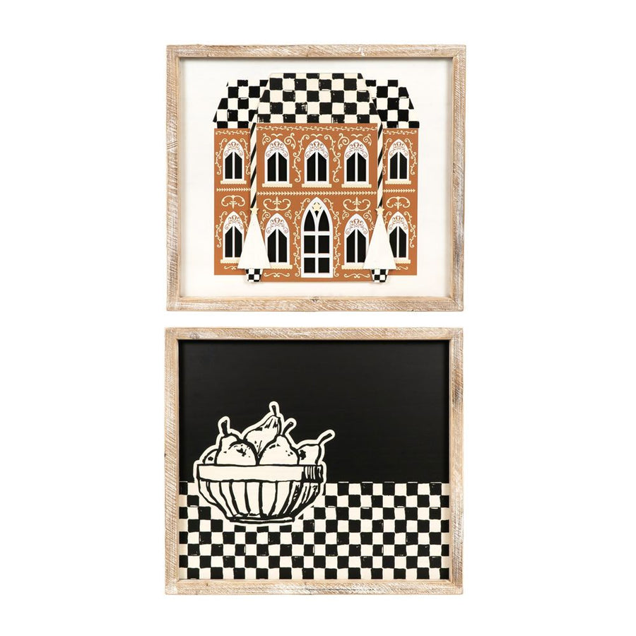 7x7 Reversible Wood Frame Sign - Squiggle/Woman