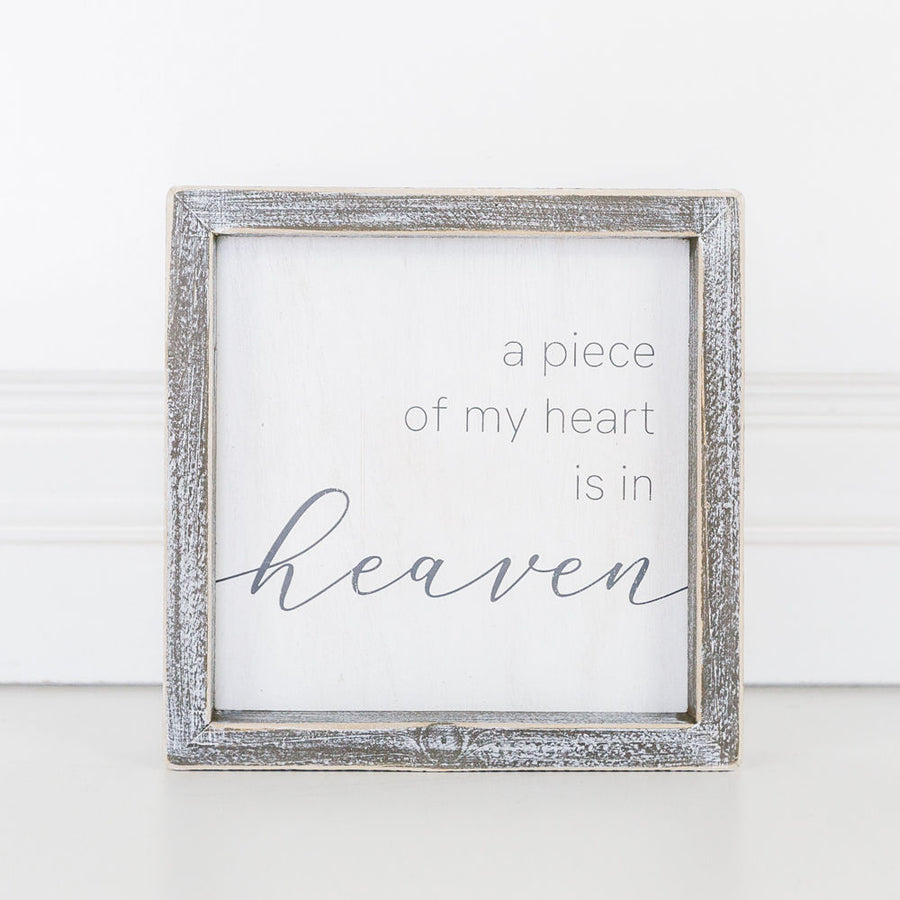 7x7 Sympathy Heart Wood Sign - A Piece of My Heart Is In Heaven